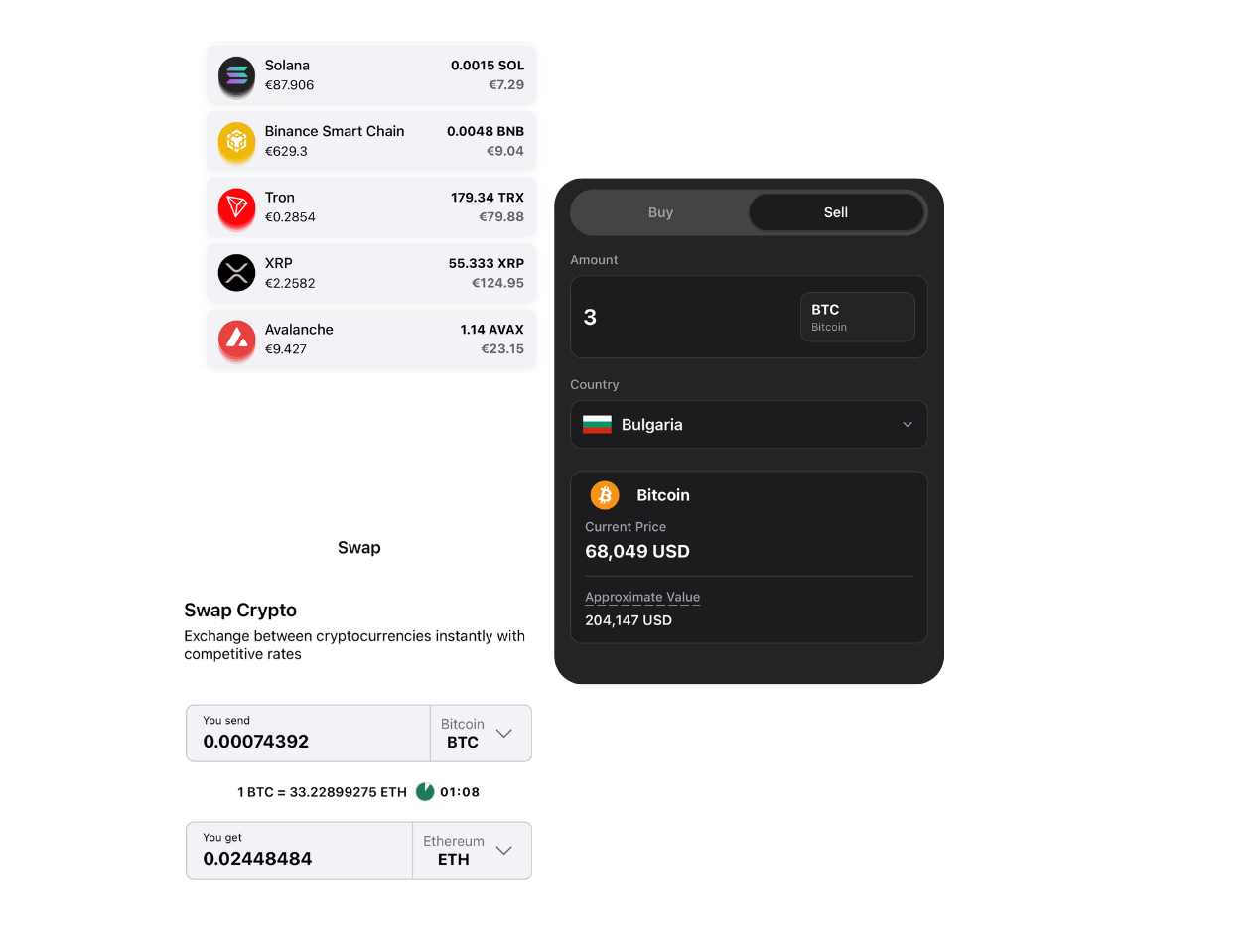 Major Cryptocurrencies & Altcoins supported, with privacy and self custody. Seamless transactions, tracking exchange. Buy Sell or Swap Crypto with a press of a button. Less Friction and tailored UI/UX for the customer.