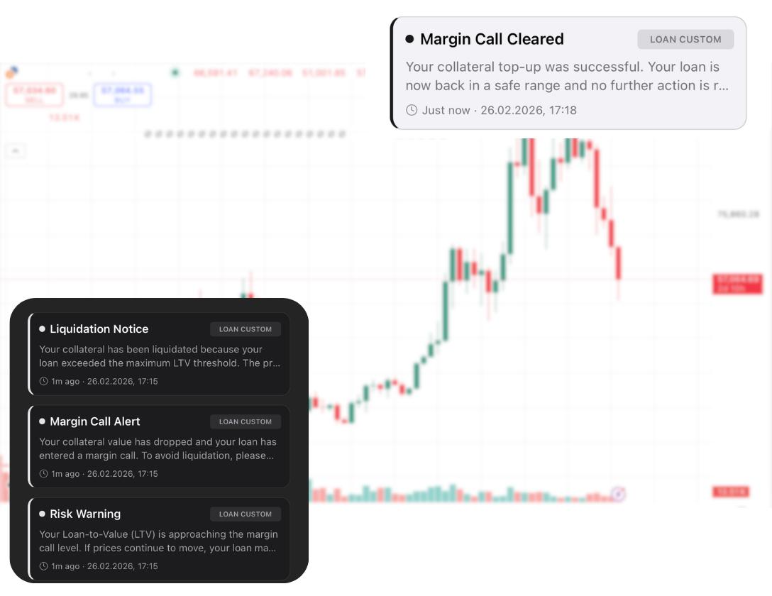 • Automated Margin Calls & Liquidations: We programmatically execute margin calls and fiat liquidations the moment your predefined risk thresholds are met
